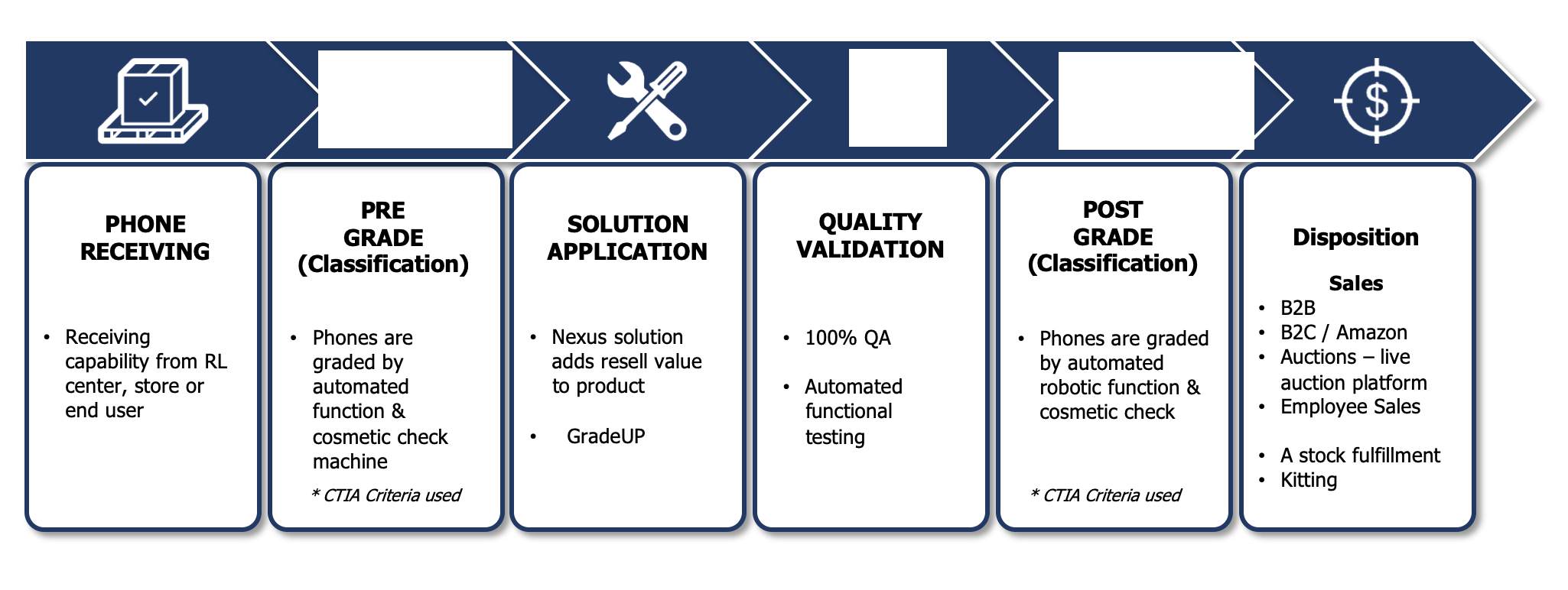 Nexus proprietary non-invasive handset polishing machines & functional repair capability.